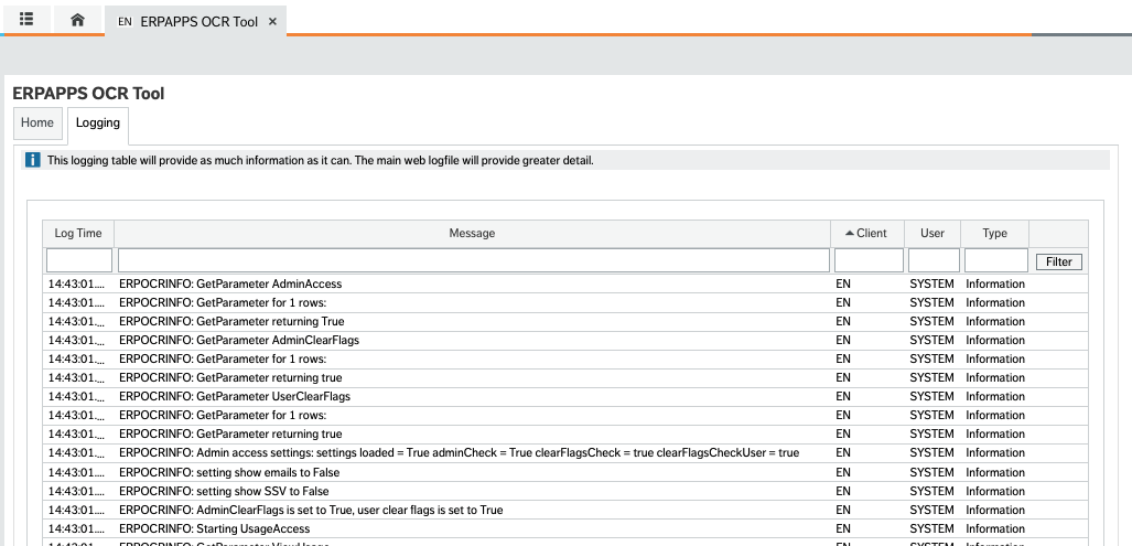 Version 1.4.1.0 added a logging screen, this is particularly useful where web front end logs are somewhat harder to obtain.